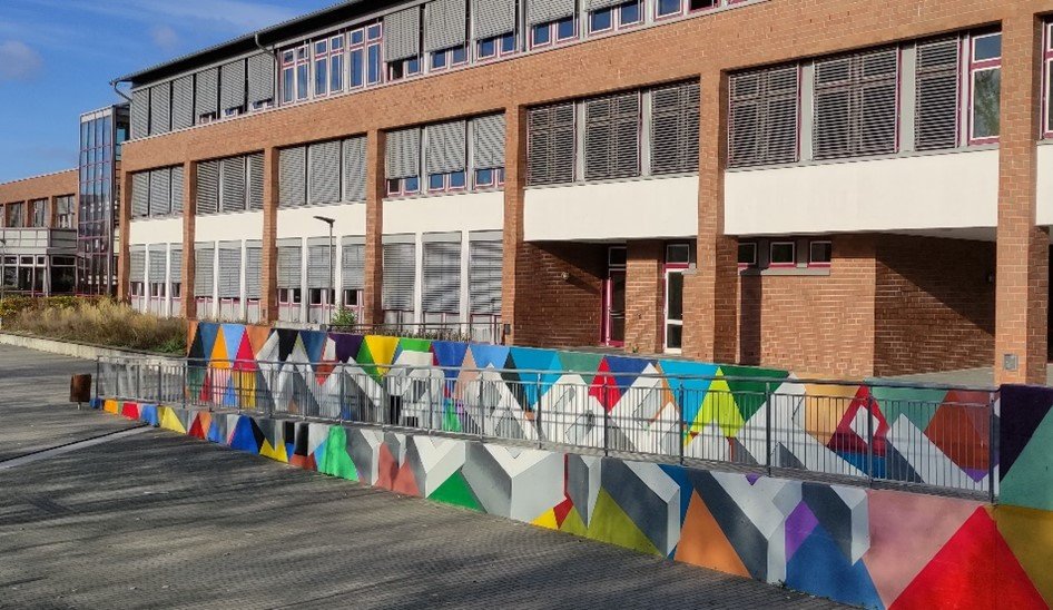 Im November 2021 ermittelte eine Jury, unterstützt von einem Voting insbesondere der Kunstkurse unserer Oberstufe, aus acht Wettbewerbs-Entwürfen einen Preisträger.