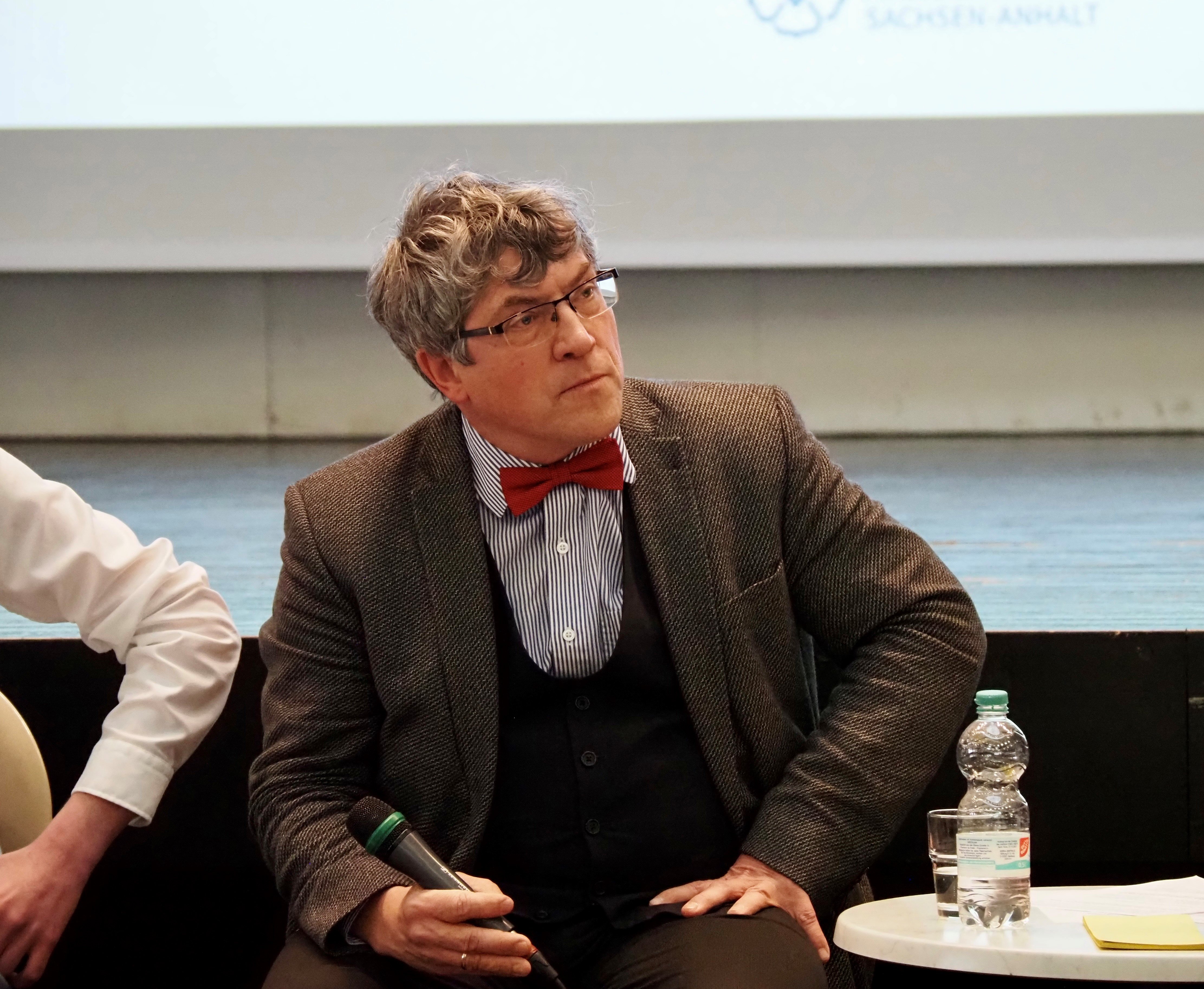 Nach der Diskussion nahm sich der Friedensbeauftragte noch Zeit für Nachgespräche in kleinen Gruppen. Insgesamt war es ein sehr guter Austausch zwischen den Jugendlichen und Friedrich Kramer. Angesichts der Aktualität des Themas, der emotionalen Aufgeladenheit und der Komplexität des Themas reichte die Zeit bei weitem nicht, um Antworten zu finden. Insofern ist es gut, dass eine Lehrerin und der Schulleiter gleich im Anschluss der Veranstaltung anfingen zu überlegen, wie die Auseinandersetzung mit dem Krieg gegen die Ukraine mit den Schüler:innen fortgesetzt werden kann. Dabei ist auch eine weitere Kooperation mit der Ev. Akademie Sachsen-Anhalt denkbar.