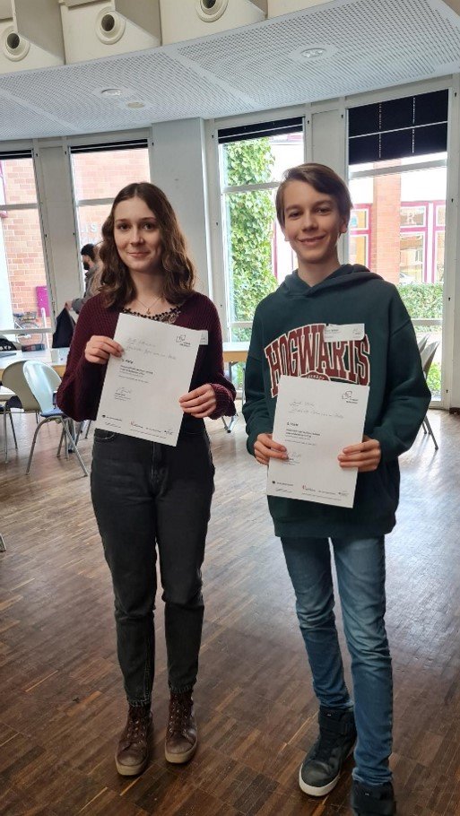 Wir freuen uns, dass das Elisabeth-Gymnasium auch in diesem Jahr nicht nur Austragungsort des Regionalwettbewerbs war, sondern ebenso Sieger hervorbringen konnte, die die Schulgemeinschaft im Bundeswettbewerb repräsentieren werden. Unsere Gratulation gilt Jonah Winter und Lilli Zillmann (8a) für den 2. und 3. Platz sowie Johanna Guse (11. Jg.) für den 1. Platz der zweiten Altersgruppe. Ein großer Dank gilt Gabriele Brülls, die als Koordinatorin den Regionalwettbewerb organisiert und ausgerichtet hat.
