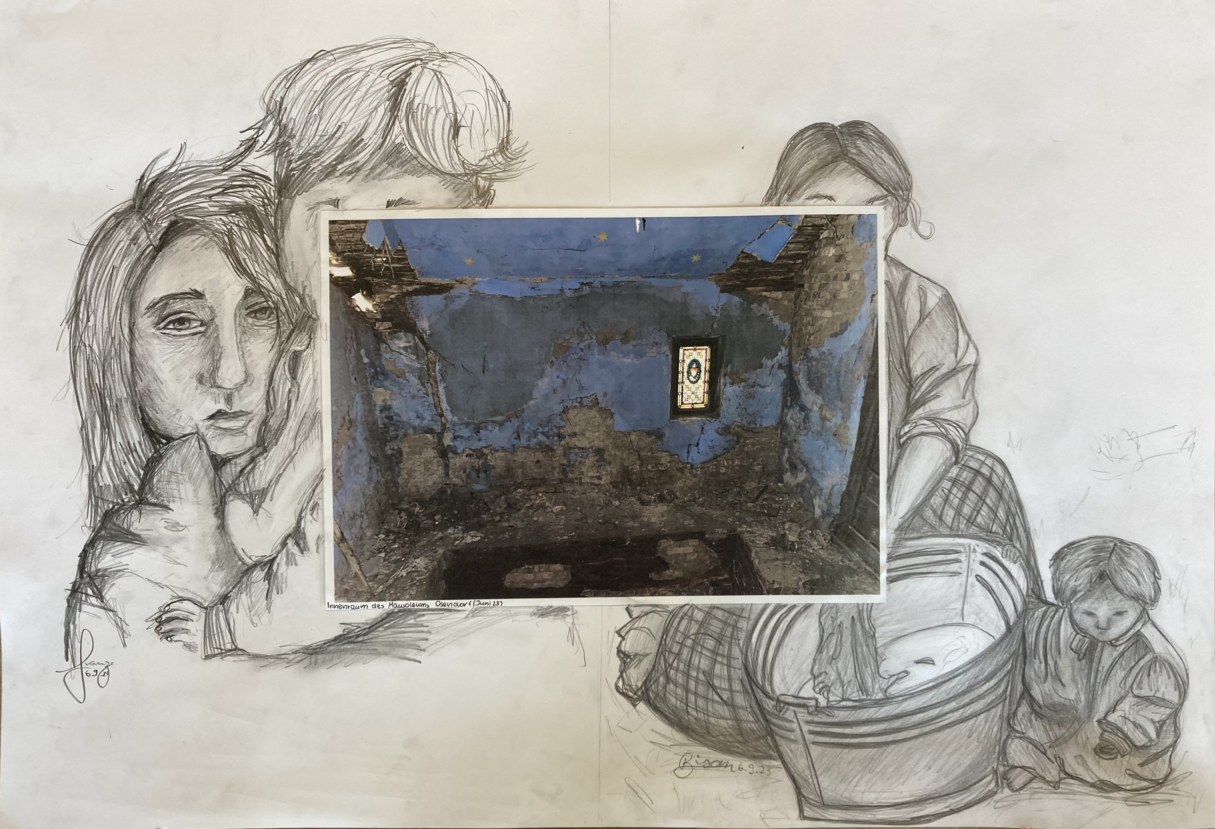Während unserer Projektarbeit erfuhren wir interessante Details über die Familiengeschichte des 1915 wahrscheinlich hier beigesetzten Sinto Josef „Nauni“ Weinlich. Ein Interview mit Henk van Iterson, einem in den Niederlanden lebenden Urenkel, konnte dank moderner Technik digital durchgeführt werden. Künstlerisch verarbeiteten wir unsere Eindrücke in Bildern, die der Öffentlichkeit in Form einer kleinen Galerie präsentiert werden konnten.