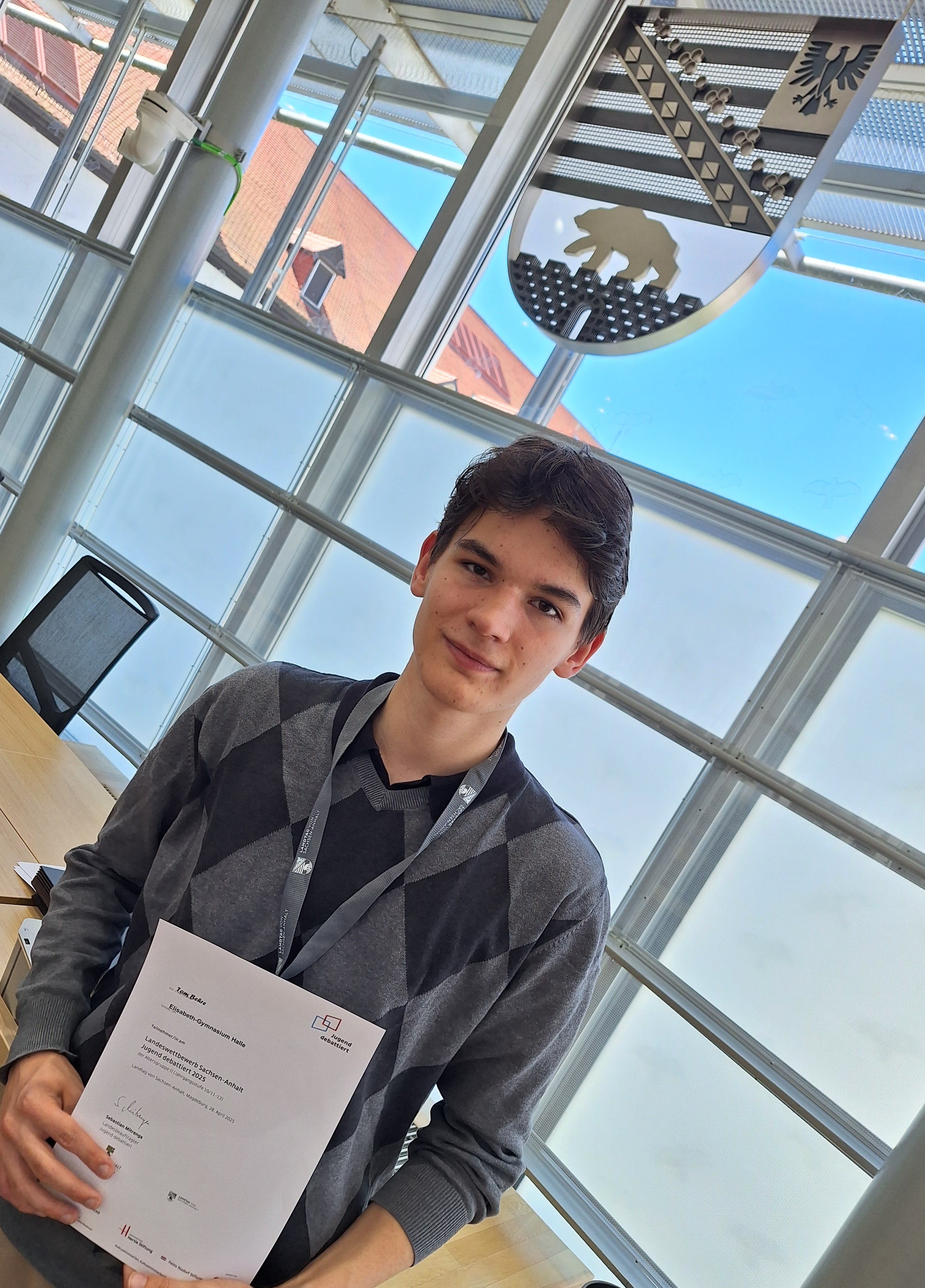 Für die Finaldebatte qualifizierte sich Tom zwar nicht, auch wenn er zur Frage der Reduzierung öffentlich-rechtlicher Sender sicherlich einiges beizusteuern gehabt hätte. Der aktuelle Skandal um das horrende Ruhegehalt der ehemaligen Intendantin des RBB etwa wurde in der Siegerdebatte nicht angesprochen. „Ich habe mein Ziel erreicht, auf Landesebene mitzumachen“, sagte der Abiturient, der nun seine nächsten Klausuren im Blick hat. Und der als langjähriges Mitglied nachfolgenden Schülerinnen und Schülern die Debattier-AG wärmstens empfiehlt!