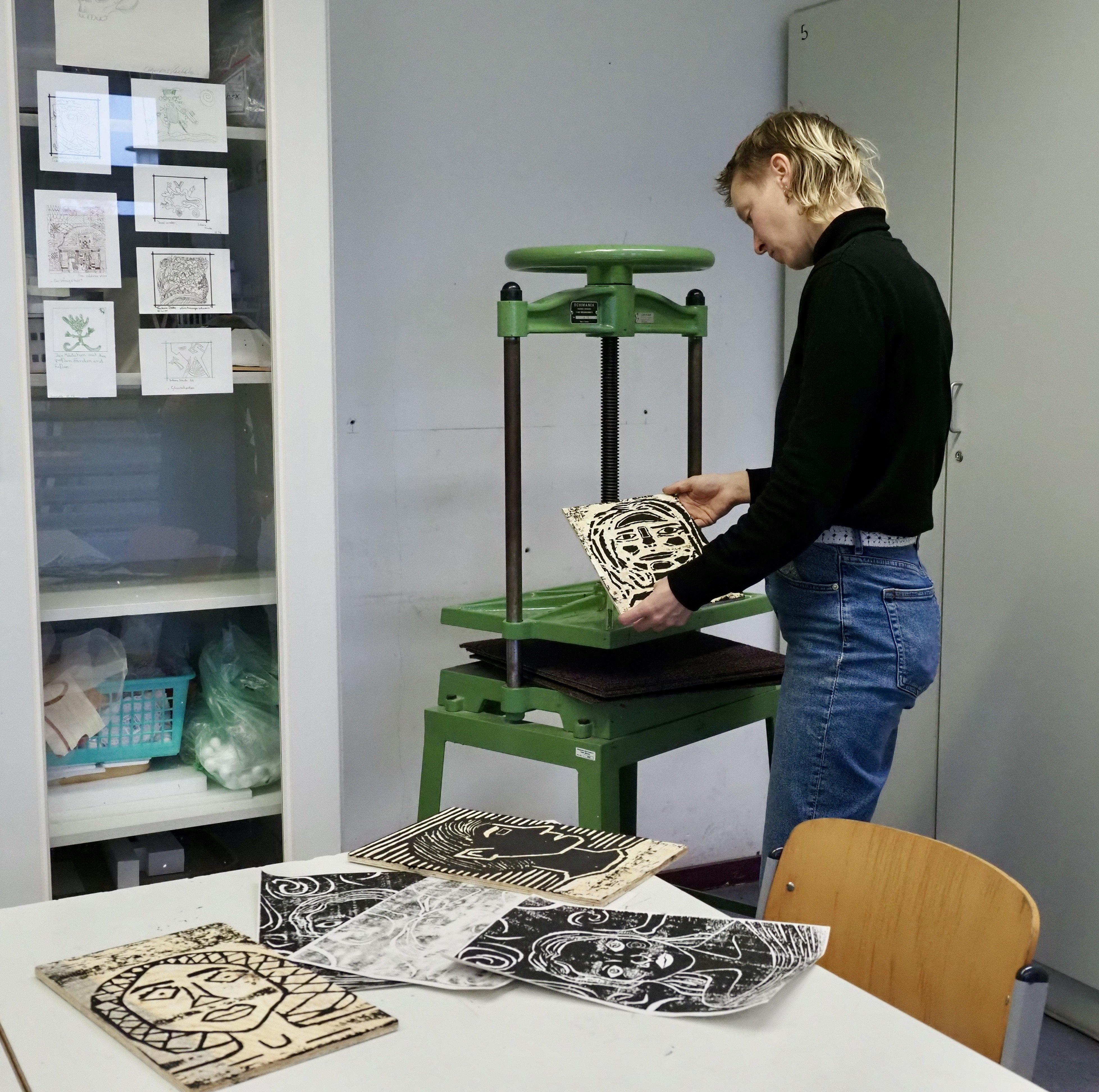 Wir freuen uns sehr darüber und erproben im Unterricht und in der Arbeitsgemeinschaft Radierung die neuen technischen Möglichkeiten, die uns die Presse eröffnet.